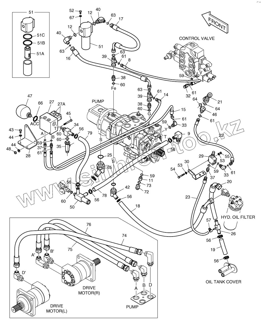 Каталог запасных частей к технике: Doosan Мини-погрузчик 450 Plus (Tier3). 6530 Трубопроводы управления