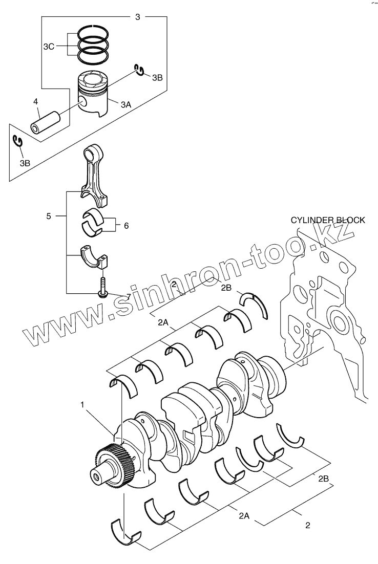 Каталог запасных частей к технике: Doosan Мини-погрузчик 460 Plus. 004 Вал коленчатый и поршень