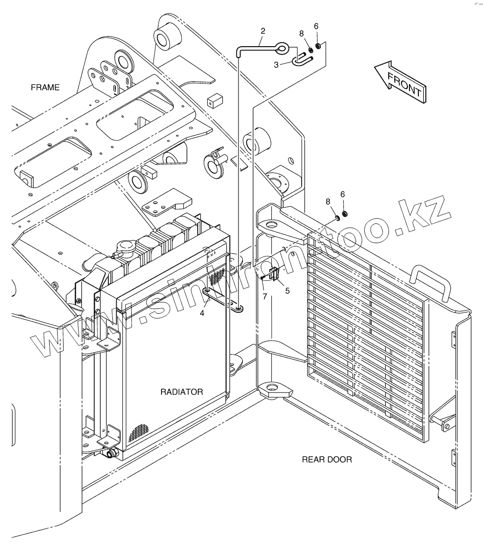 Каталог запасных частей к технике: Doosan Мини-погрузчик 460 Plus. 6390 Замок задней двери