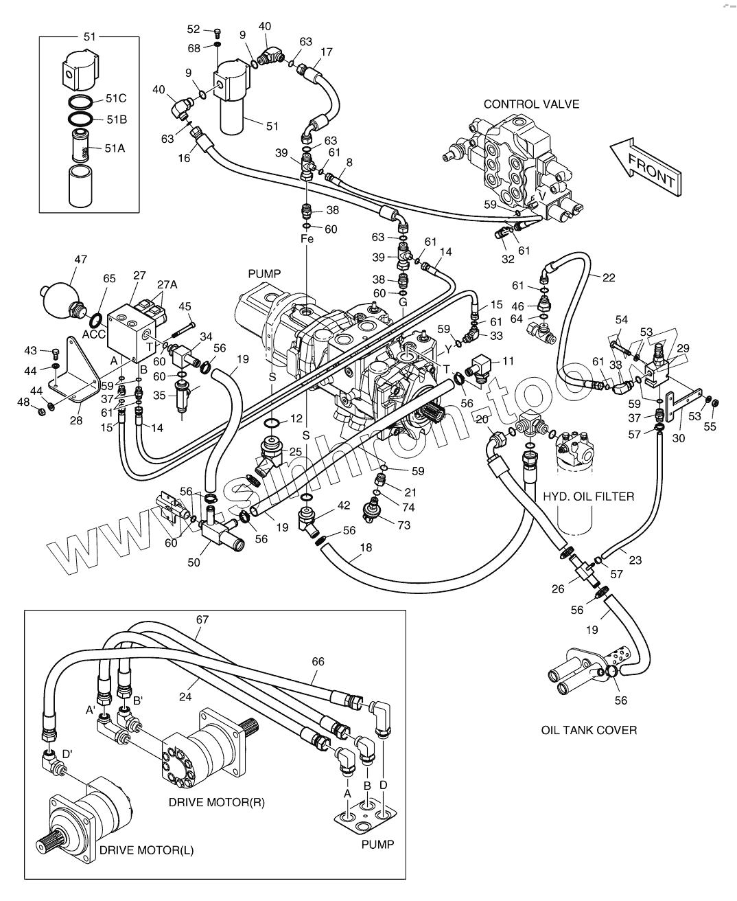 Каталог запасных частей к технике: Doosan Мини-погрузчик 460 Plus. 6551 Трубопроводы управления