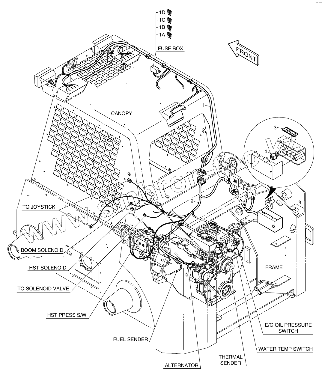 Каталог запасных частей к технике: Doosan Мини-погрузчик 460 Plus. 6580 Жгуты проводов