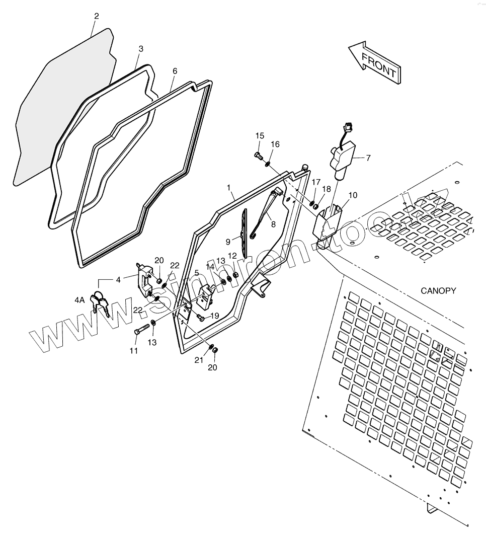 Каталог запасных частей к технике: Doosan Мини-погрузчик 460 Plus (Tier3). 6260 Передняя дверь