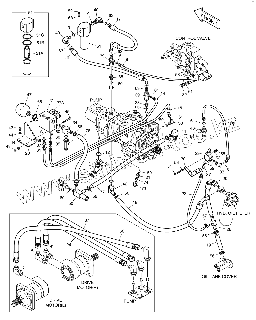 Каталог запасных частей к технике: Doosan Мини-погрузчик 460 Plus (Tier3). 6520 Трубопроводы управления