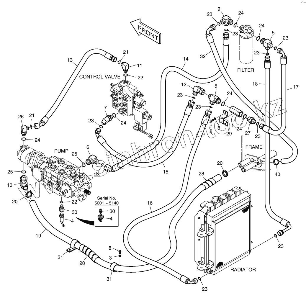 Каталог запасных частей к технике: Doosan Мини-погрузчик 470 Plus. 3130 Трубопроводы маслоохладителя