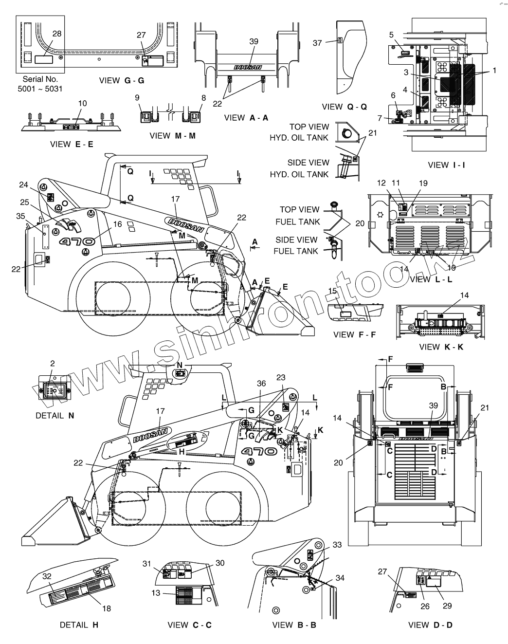 Каталог запасных частей к технике: Doosan Мини-погрузчик 470 Plus. 5100 Таблички