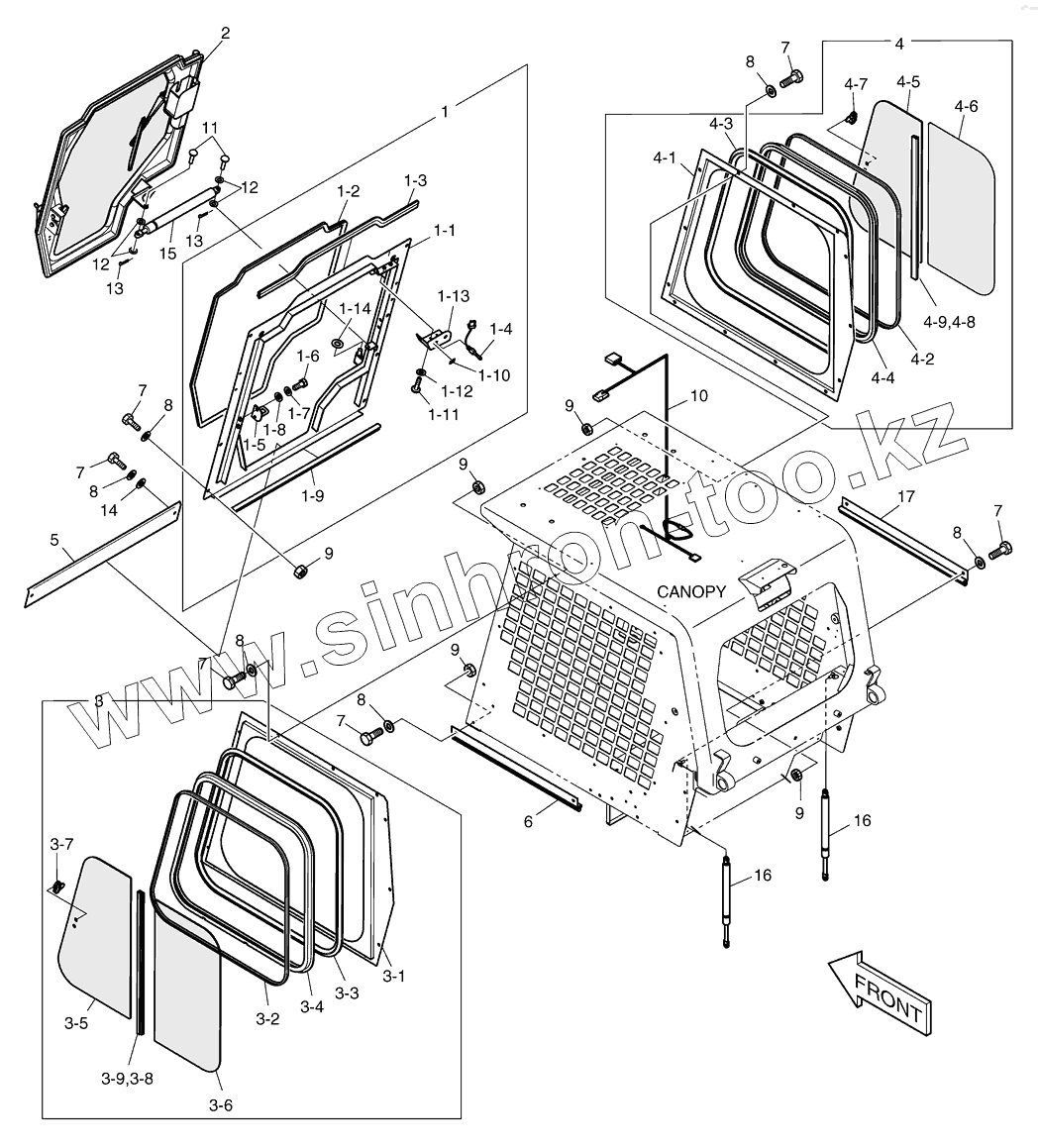 Каталог запасных частей к технике: Doosan Мини-погрузчик 470 Plus. 6260 Установка двери