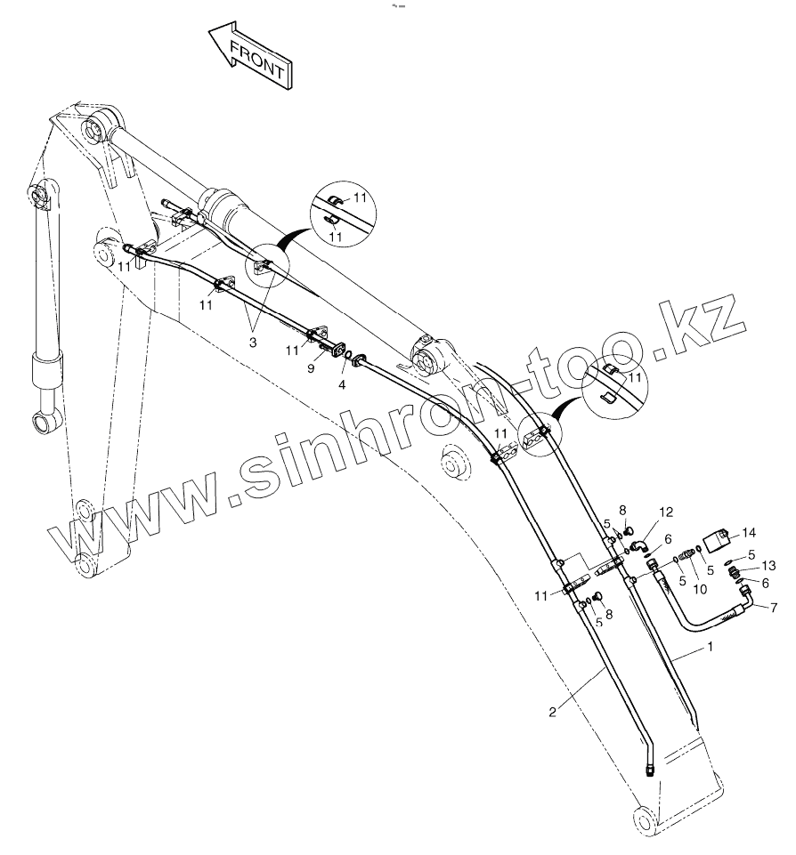 Каталог запасных частей к технике: Doosan S225LC-V. BOOM PIPING - BREAKER - BOOM 5.2m