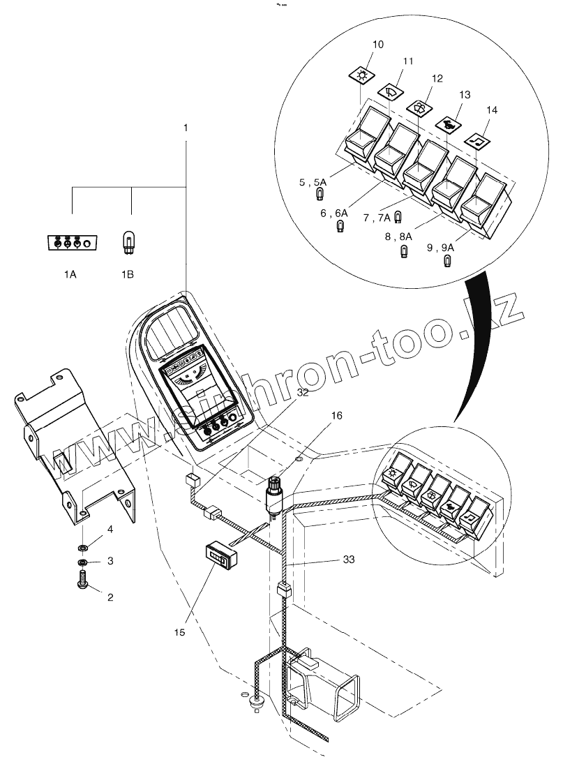 Каталог запасных частей к технике: Doosan S225LC-V. ELECTRIC PARTS - GAUGE AND SWITCH PANEL
