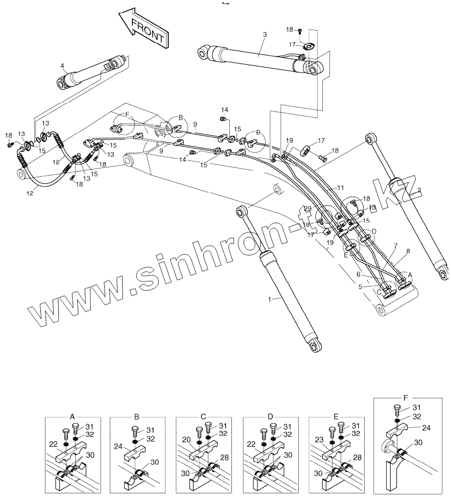 Каталог запасных частей к технике: Doosan S225LC-V. FRONT PIPING