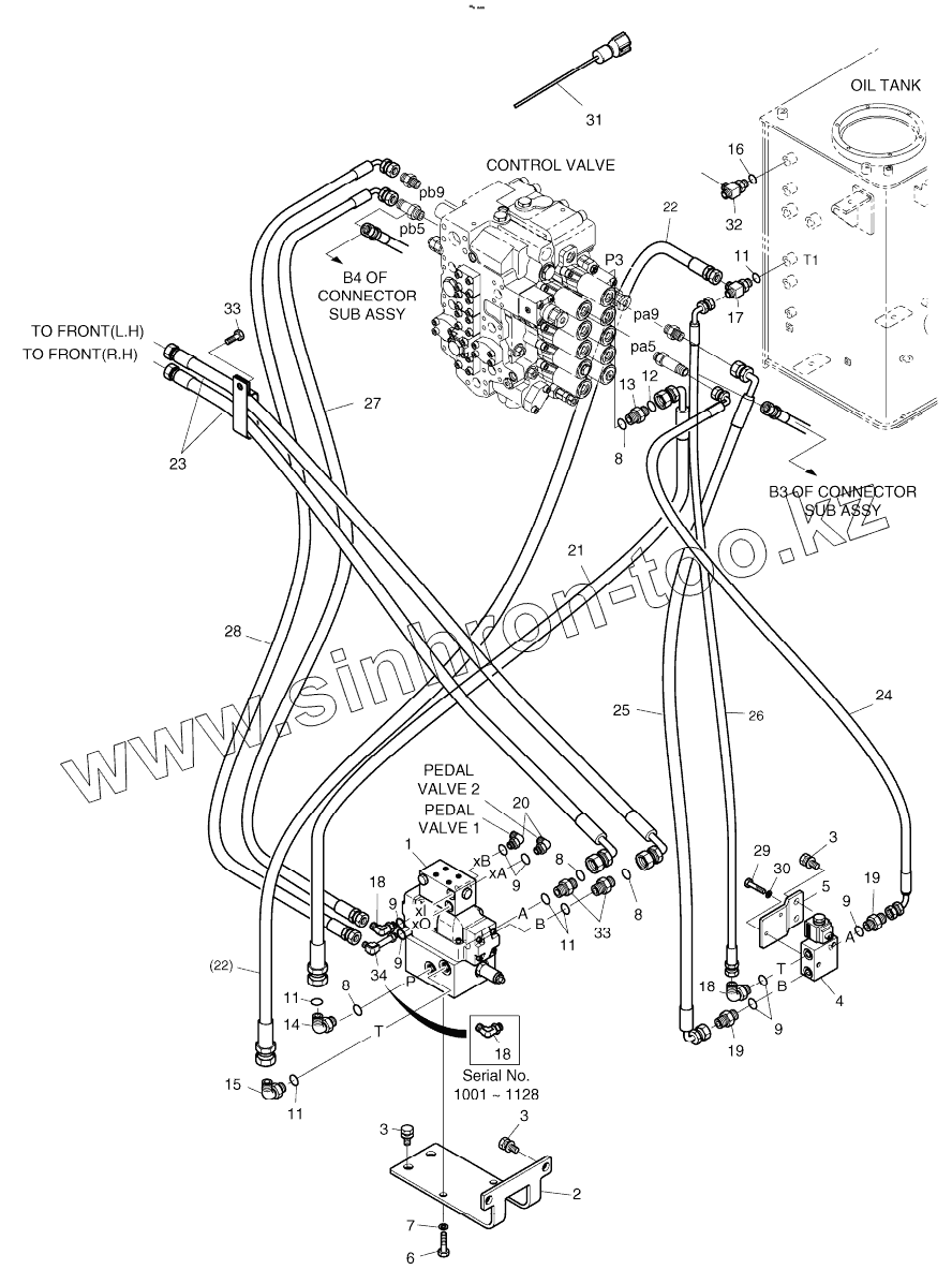 Каталог запасных частей к технике: Doosan S225LC-V. MAIN PIPING - ROTATING AND TILTING