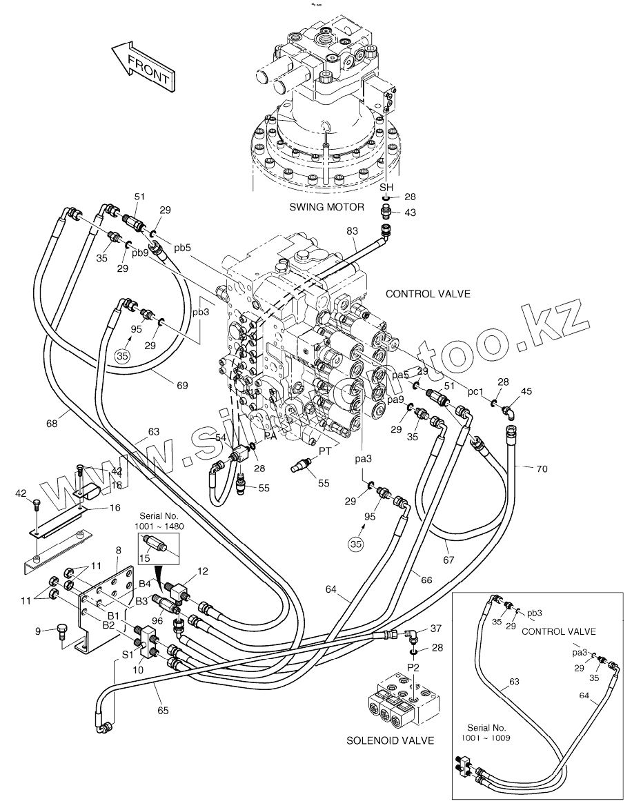 Каталог запасных частей к технике: Doosan S225LC-V. PILOT PIPING