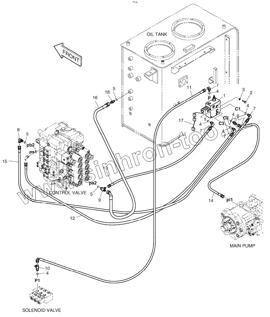 Каталог запасных частей к технике: Doosan S225LC-V. PILOT PIPING - BREAKER