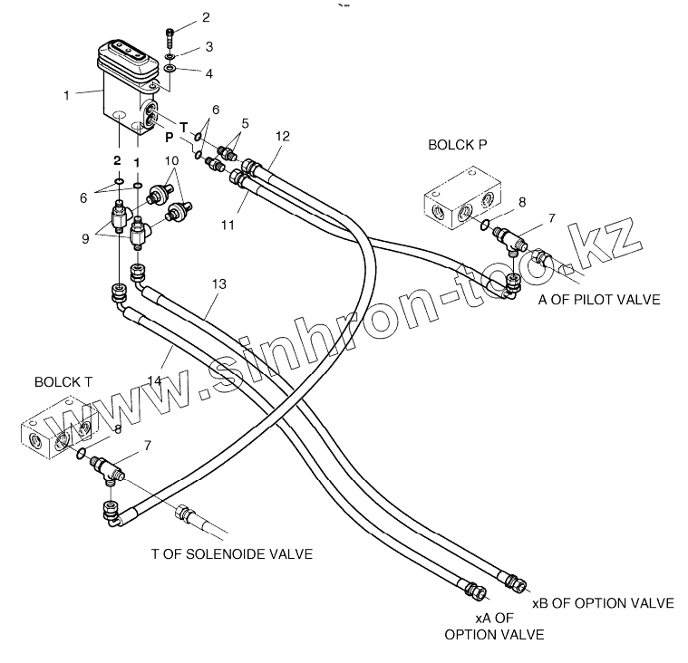 Каталог запасных частей к технике: Doosan S225LC-V. PILOT PIPING (CABIN) - ROTATING AND TILTING