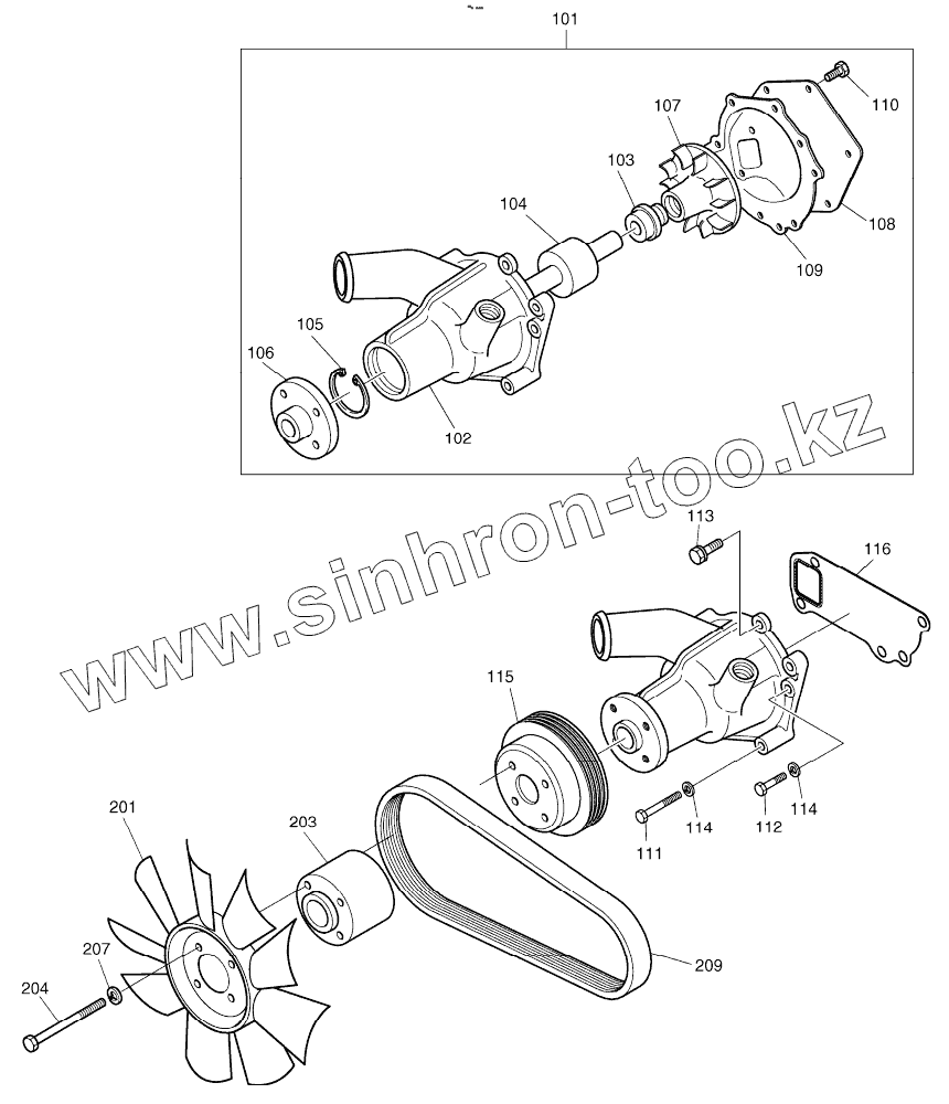 Каталог запасных частей к технике: Doosan S225LC-V. WATER PUMP AND COOLING FAN