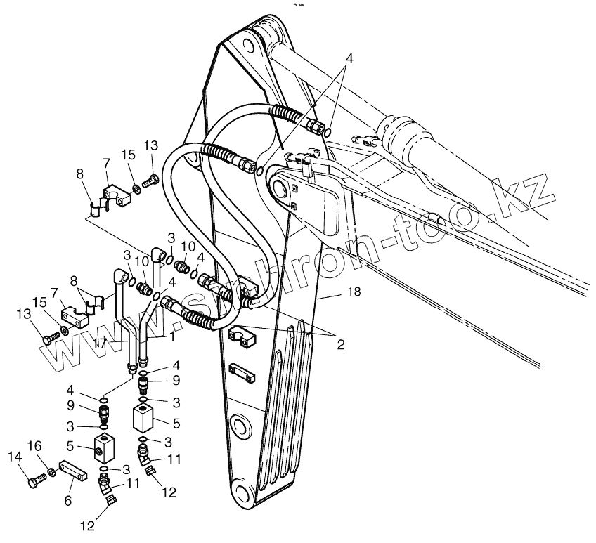 Каталог запасных частей к технике: Doosan S340LC-V. ARM PIPING - 2.6m ONE & TWO WAY