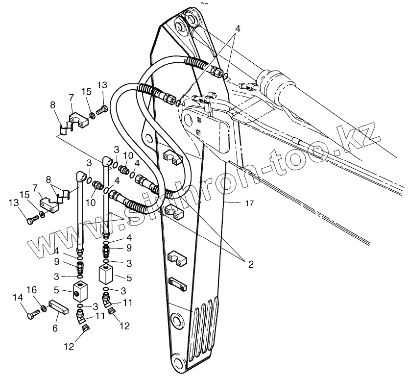 Каталог запасных частей к технике: Doosan S340LC-V. ARM PIPING - 4.0m ONE & TWO WAY