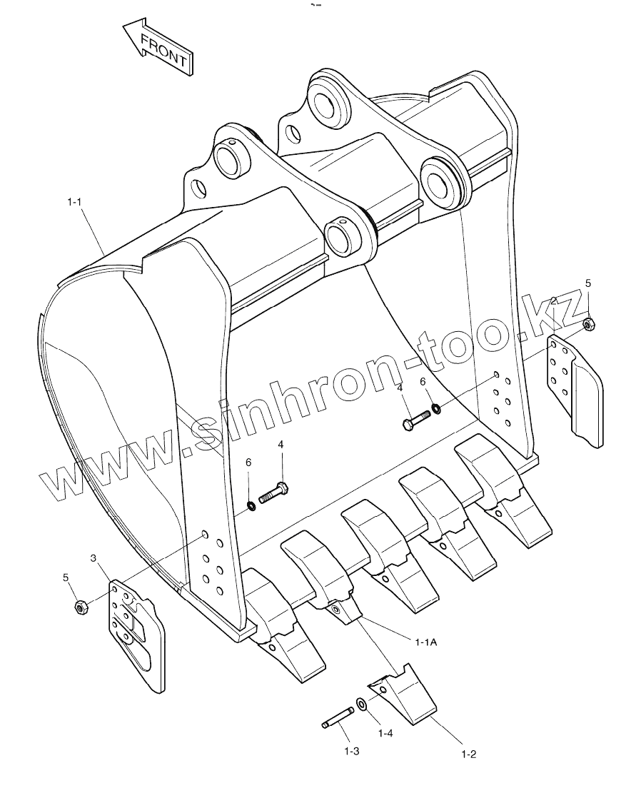 Каталог запасных частей к технике: Doosan S340LC-V. BUCKET - 1.29m3(48") - SIDE PIN