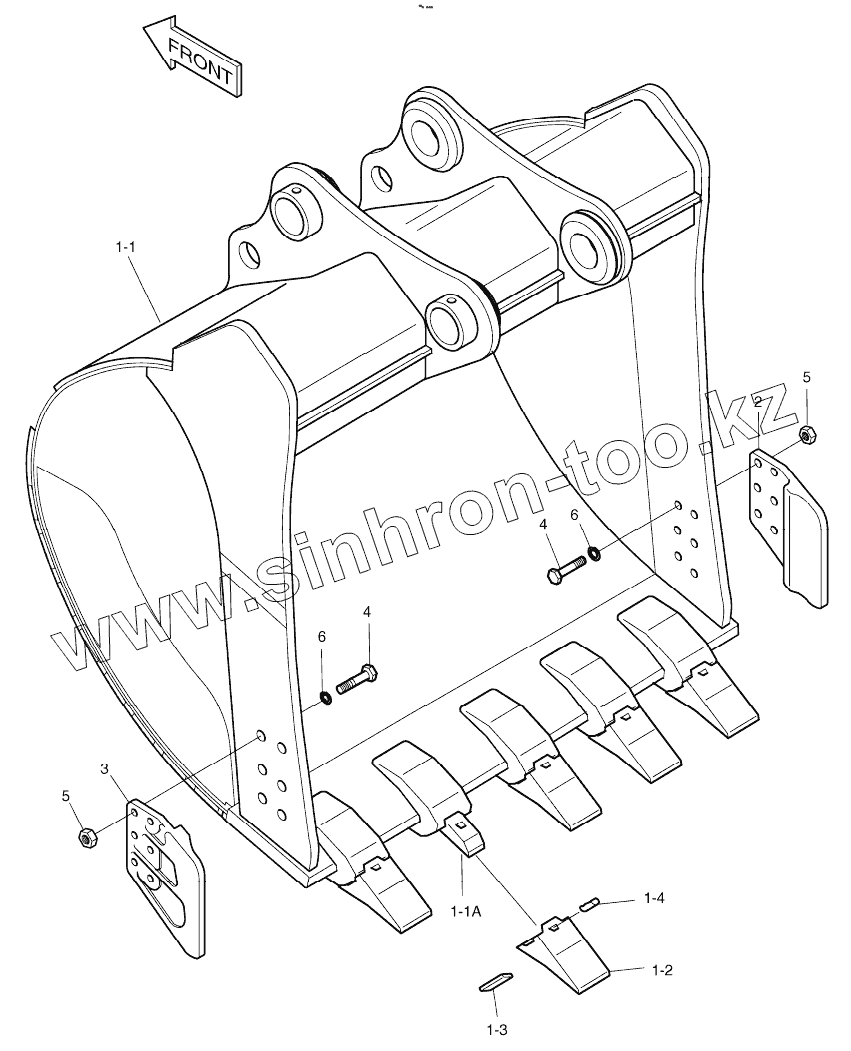 Каталог запасных частей к технике: Doosan S340LC-V. BUCKET - 1.29m3(48") - VERTICAL PIN
