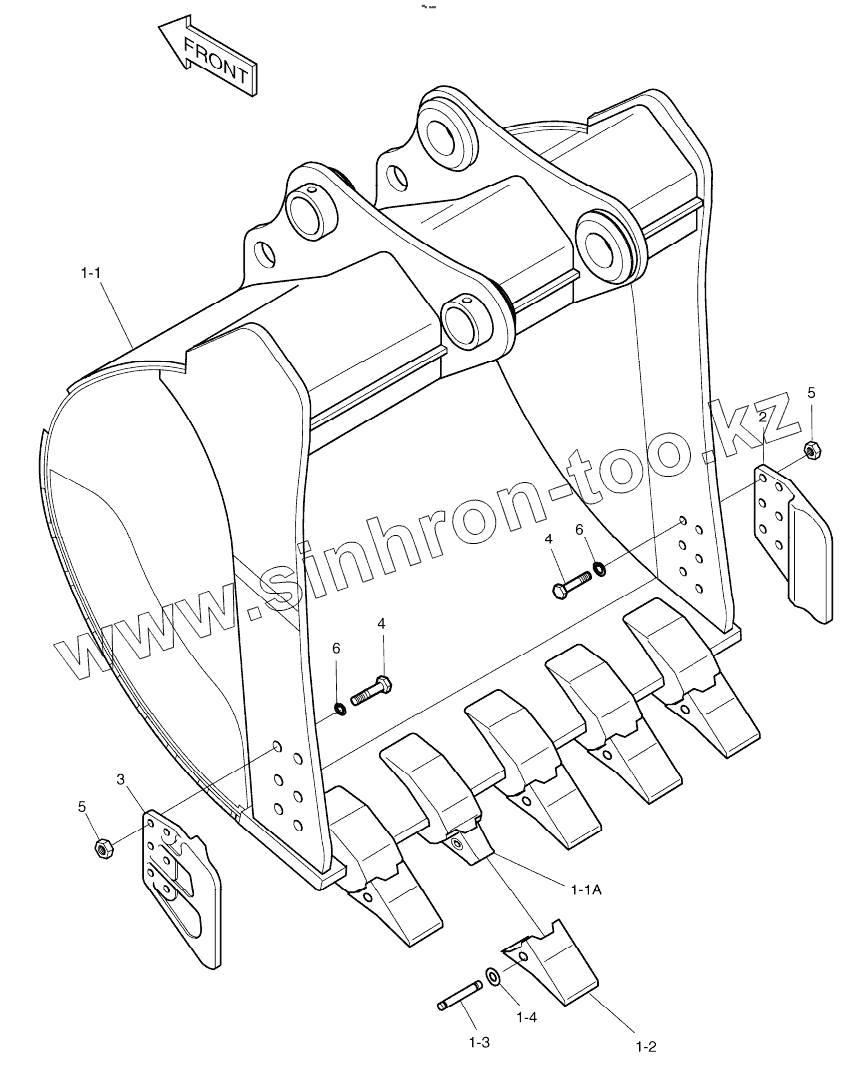 Каталог запасных частей к технике: Doosan S340LC-V. BUCKET - 1.48m3 (54") - SIDE PIN