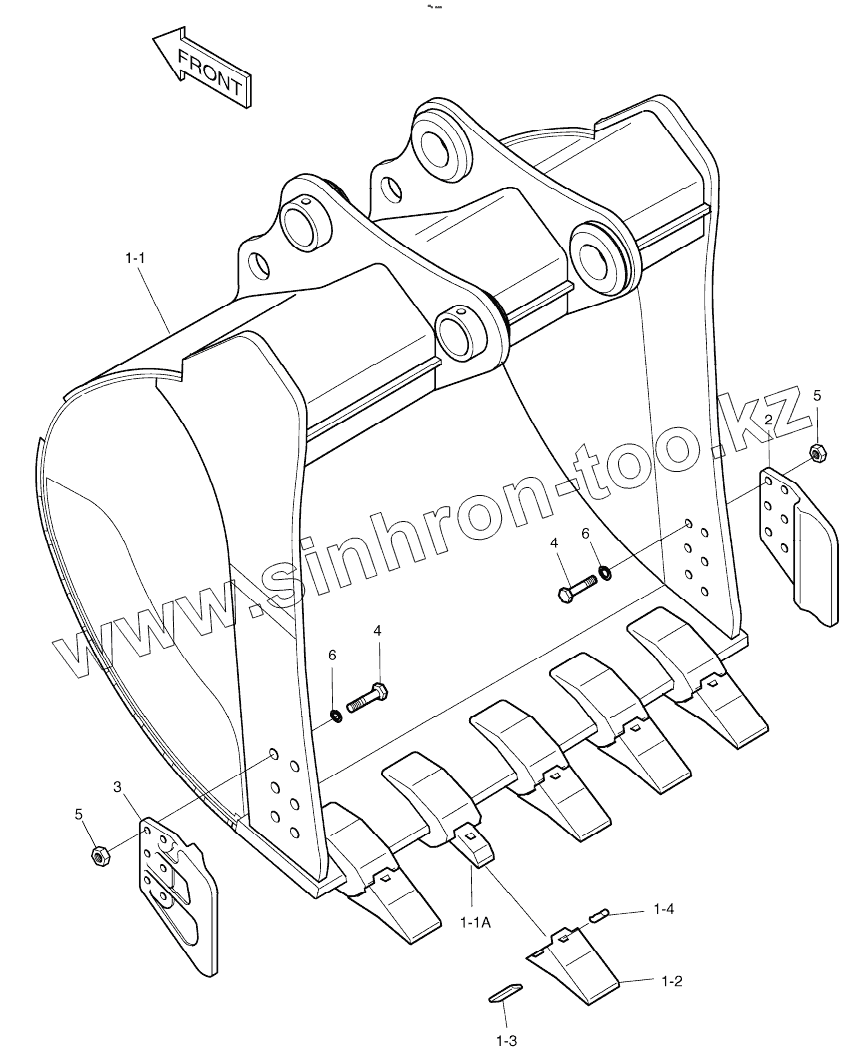 Каталог запасных частей к технике: Doosan S340LC-V. BUCKET - 1.48m3 (54") - VERTICAL PIN