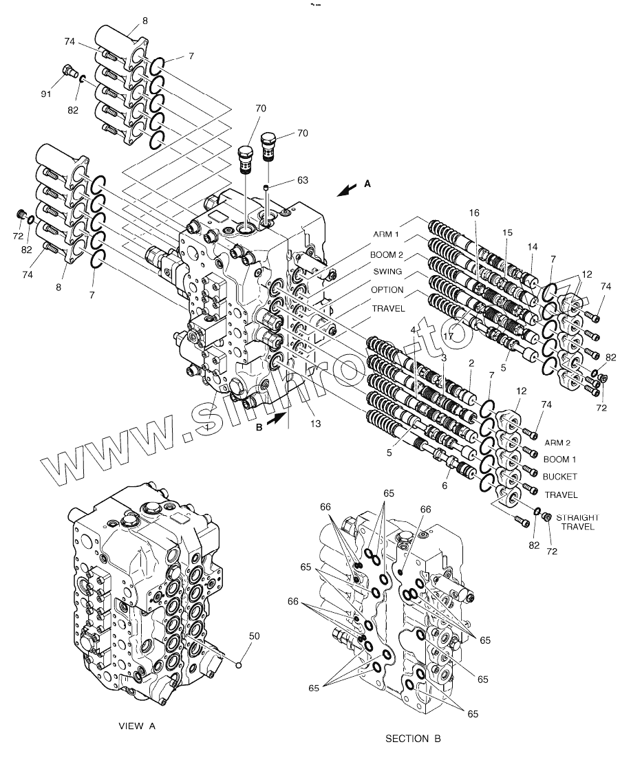 Каталог запасных частей к технике: Doosan S340LC-V. CONTROL VALVE - KVMG270