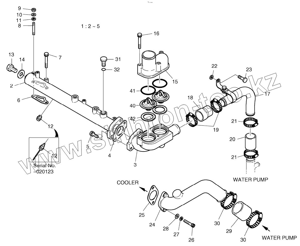 Каталог запасных частей к технике: Doosan S340LC-V. COOLING WATER PIPE
