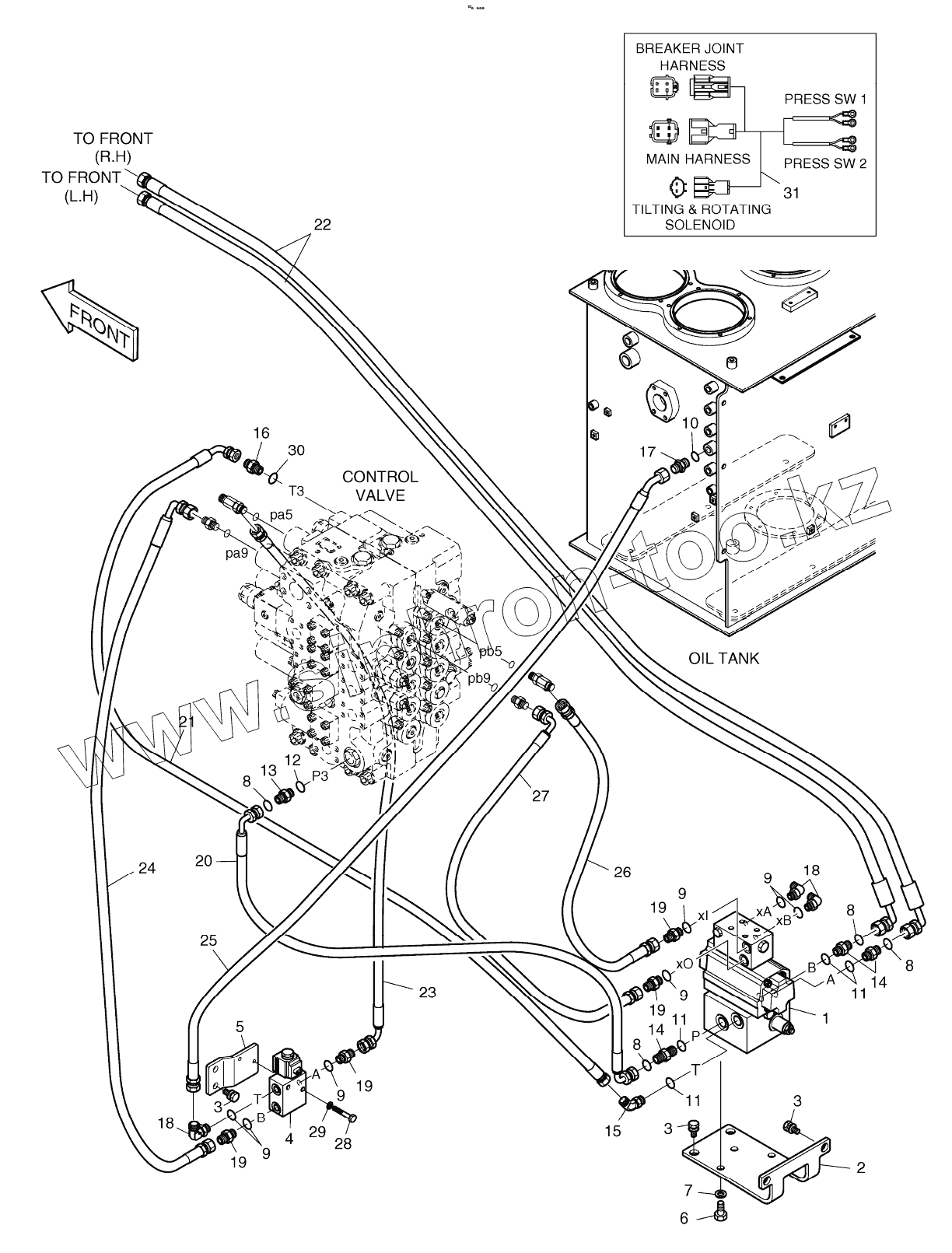 Каталог запасных частей к технике: Doosan S340LC-V. MAIN PIPING - ROTATION & TILTING