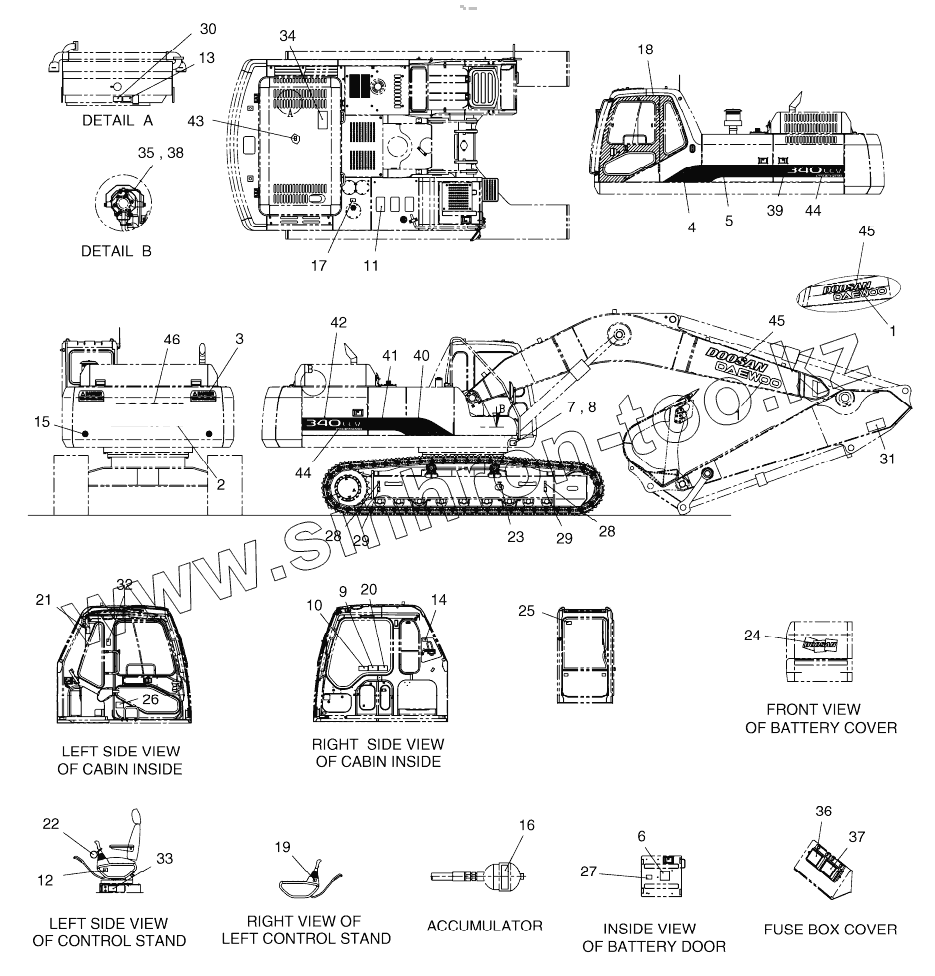 Каталог запасных частей к технике: Doosan S340LC-V. NAME PLATE - ENGLISH