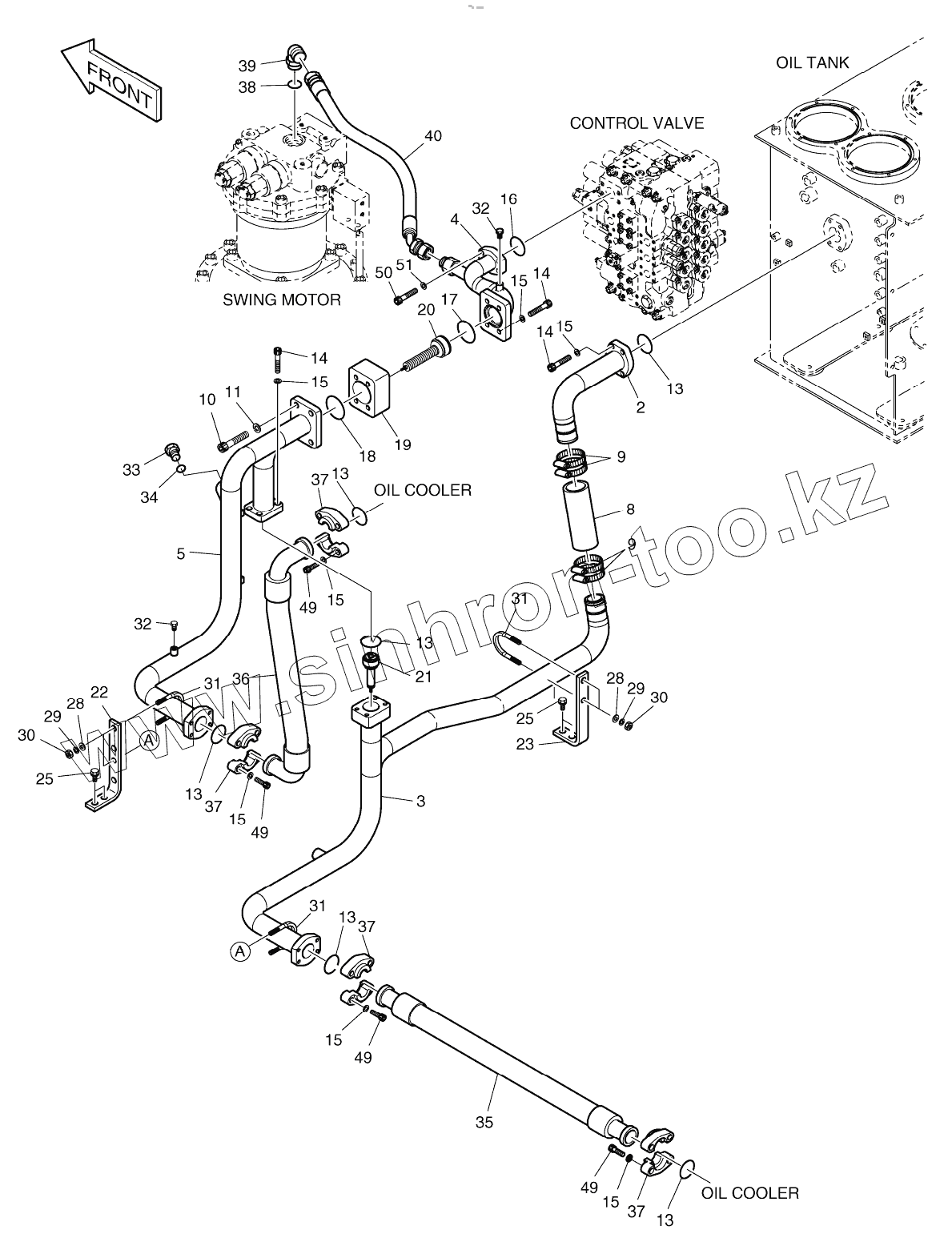 Каталог запасных частей к технике: Doosan S340LC-V. OIL COOLER PIPING