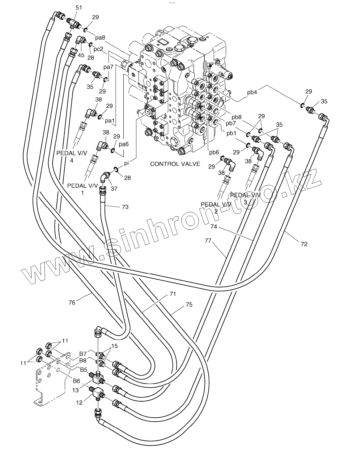 Каталог запасных частей к технике: Doosan S340LC-V. PILOT PIPING