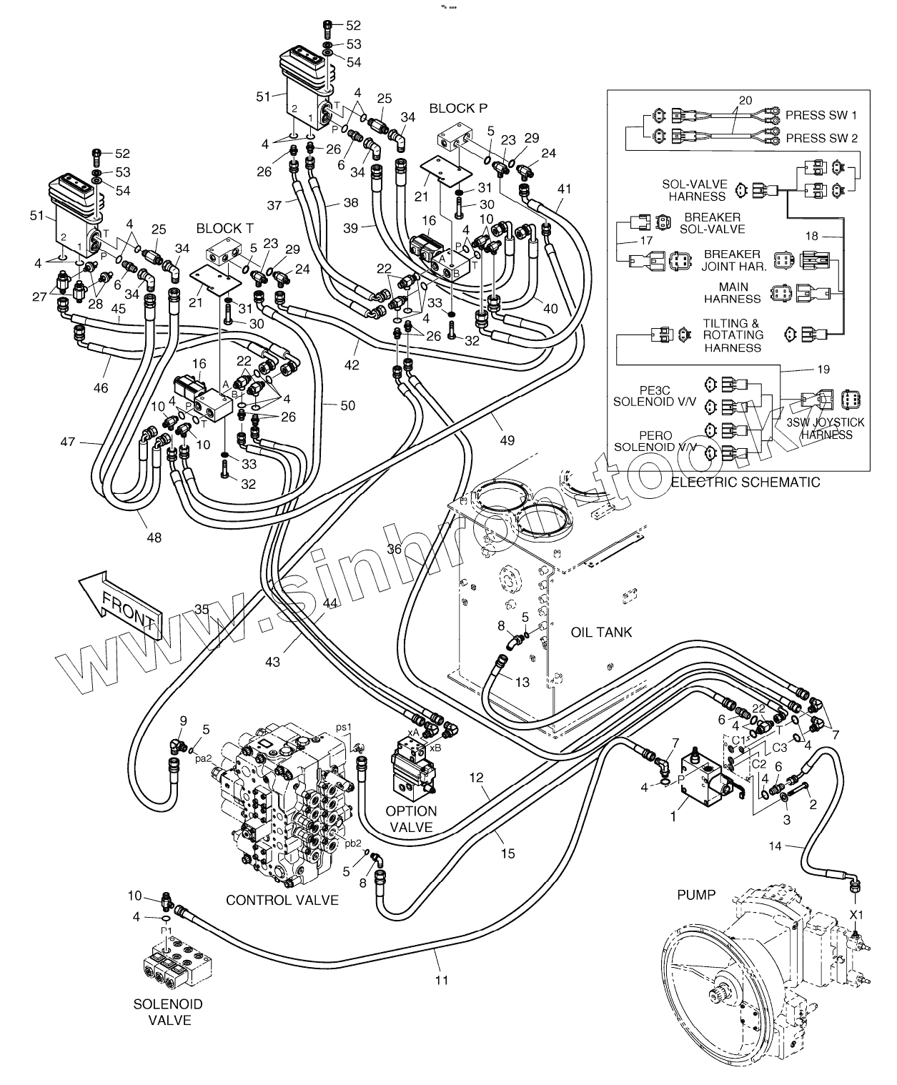 Каталог запасных частей к технике: Doosan S340LC-V. PILOT PIPING - PE3C & PERO