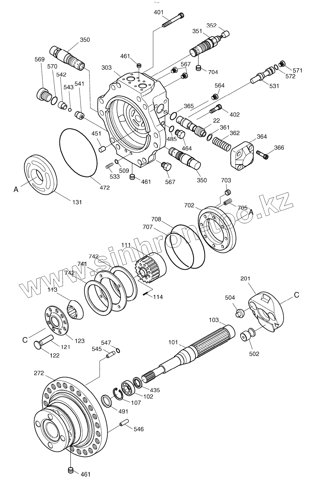 Каталог запасных частей к технике: Doosan S340LC-V. TRAVEL MOTOR