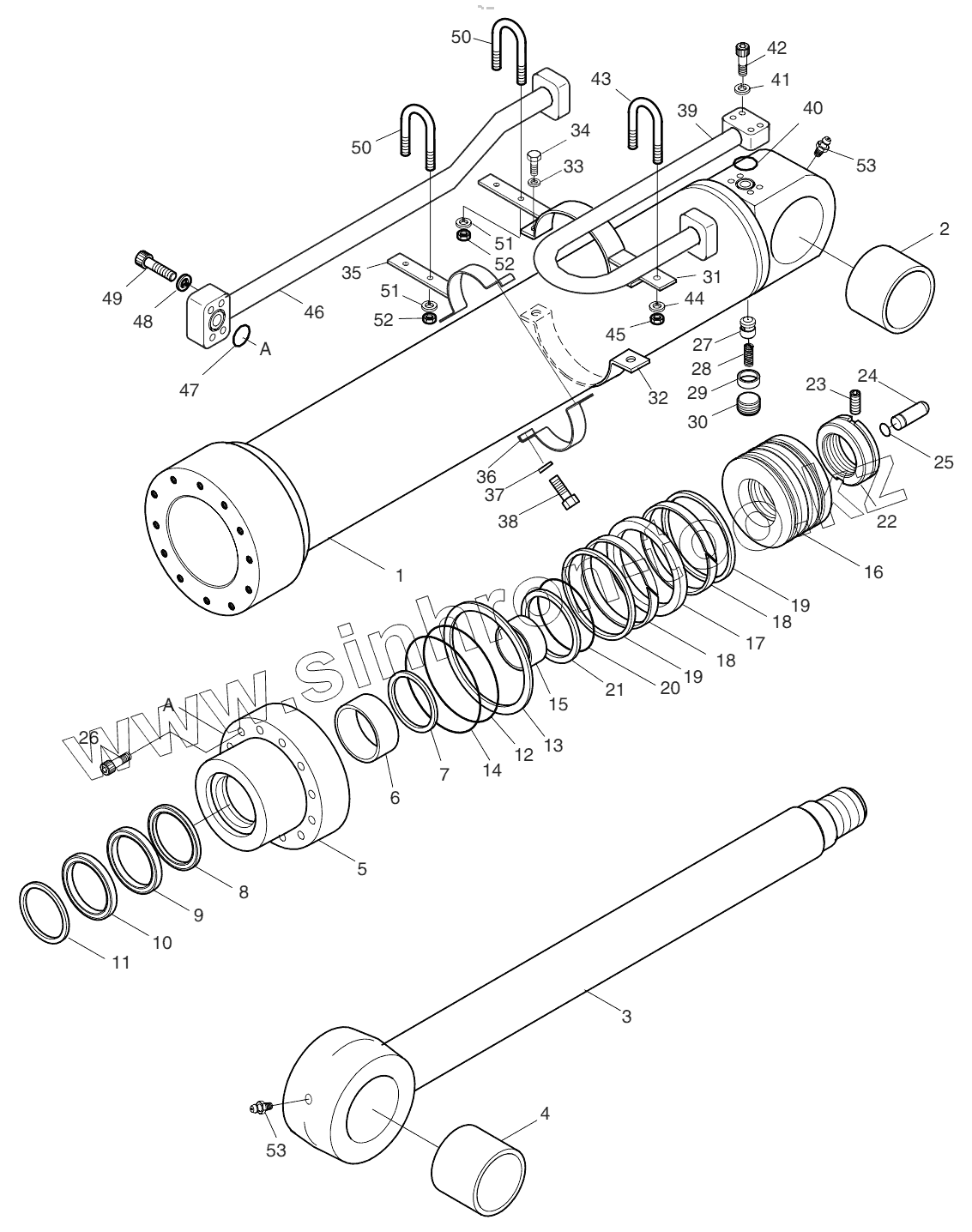 Каталог запасных частей к технике: Doosan S500LC-V. ARM CYLINDER - BOOM 6.3m