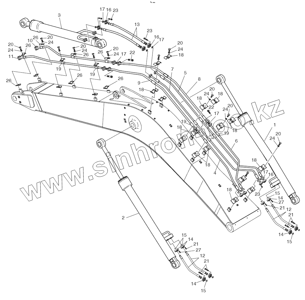 Каталог запасных частей к технике: Doosan S500LC-V. BOOM PIPING - 6.3m