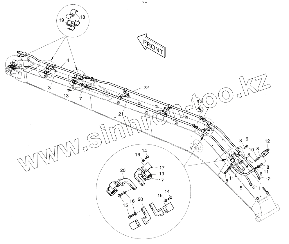 Каталог запасных частей к технике: Doosan S500LC-V. BOOM PIPING - 9.0m ONE & TWO WAY
