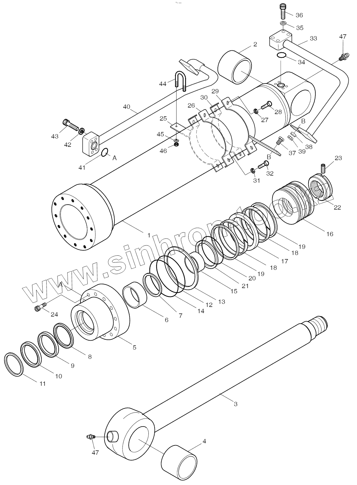 Каталог запасных частей к технике: Doosan S500LC-V. BUCKET CYLINDER