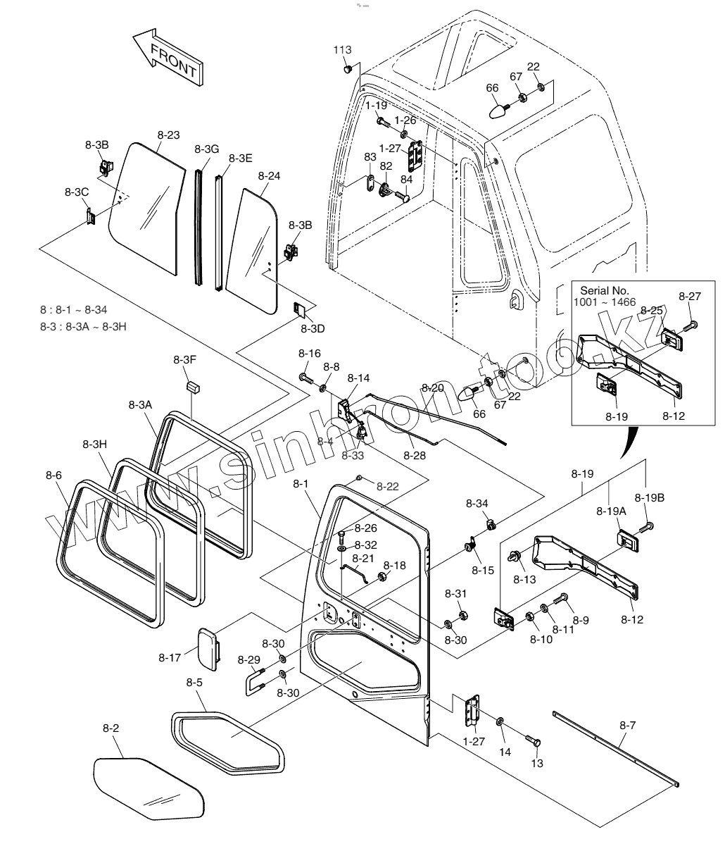 Каталог запасных частей к технике: Doosan S500LC-V. CABIN (5)