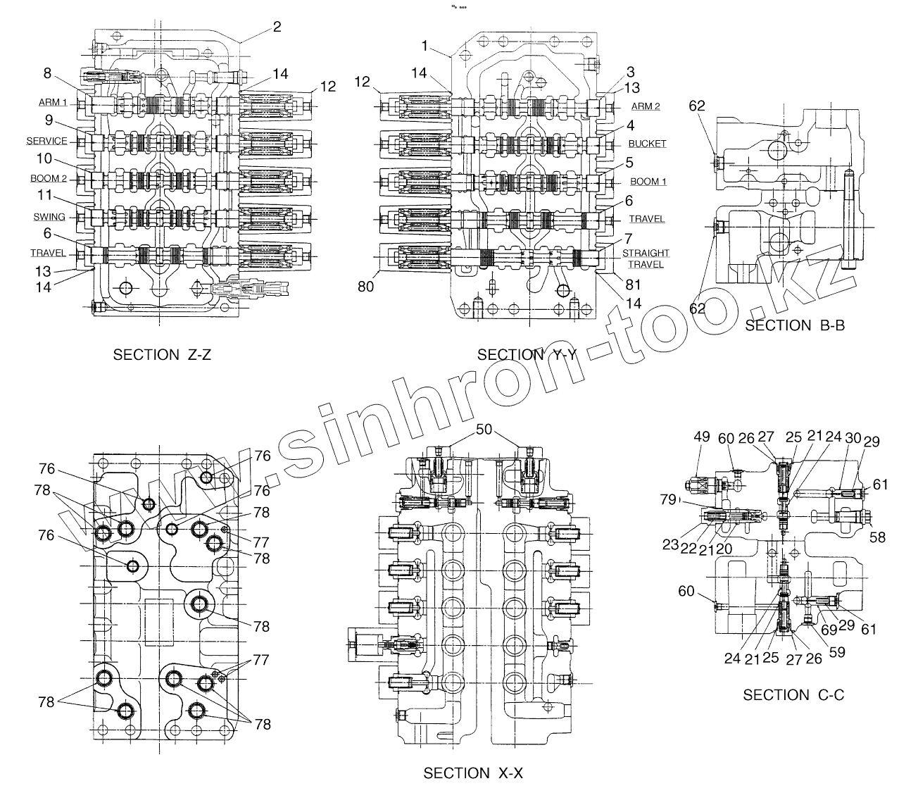 Каталог запасных частей к технике: Doosan S500LC-V. CONTROL VALVE (2)