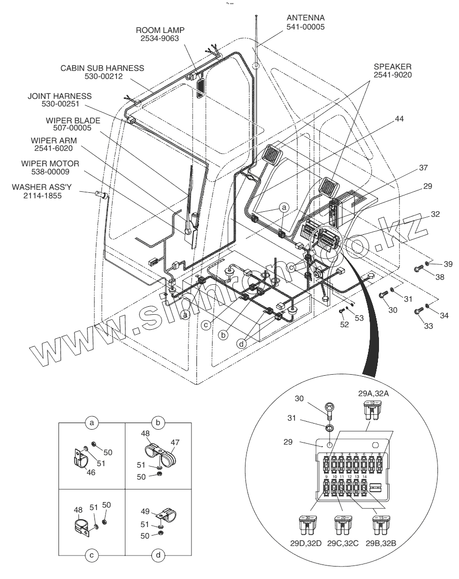 Каталог запасных частей к технике: Doosan S500LC-V. ELECTRIC PARTS (4) - CABIN