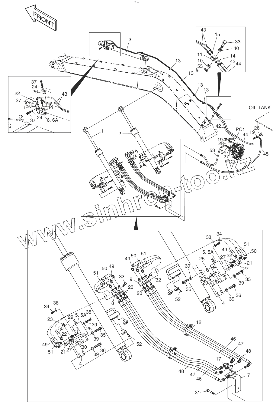 Каталог запасных частей к технике: Doosan S500LC-V. LOCK VALVE PIPING - 11.0m BOOM
