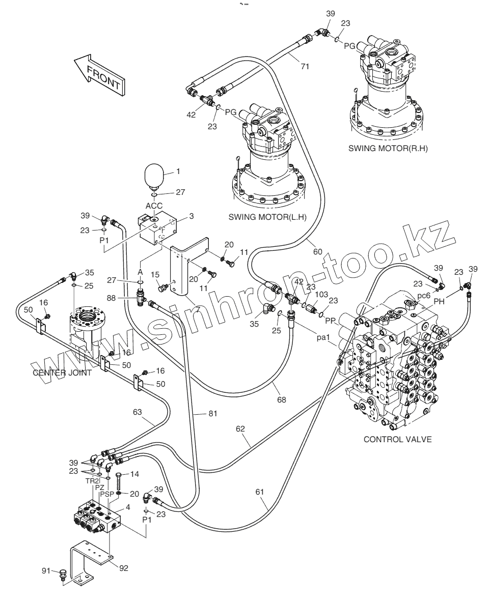 Каталог запасных частей к технике: Doosan S500LC-V. PILOT PIPING (3)