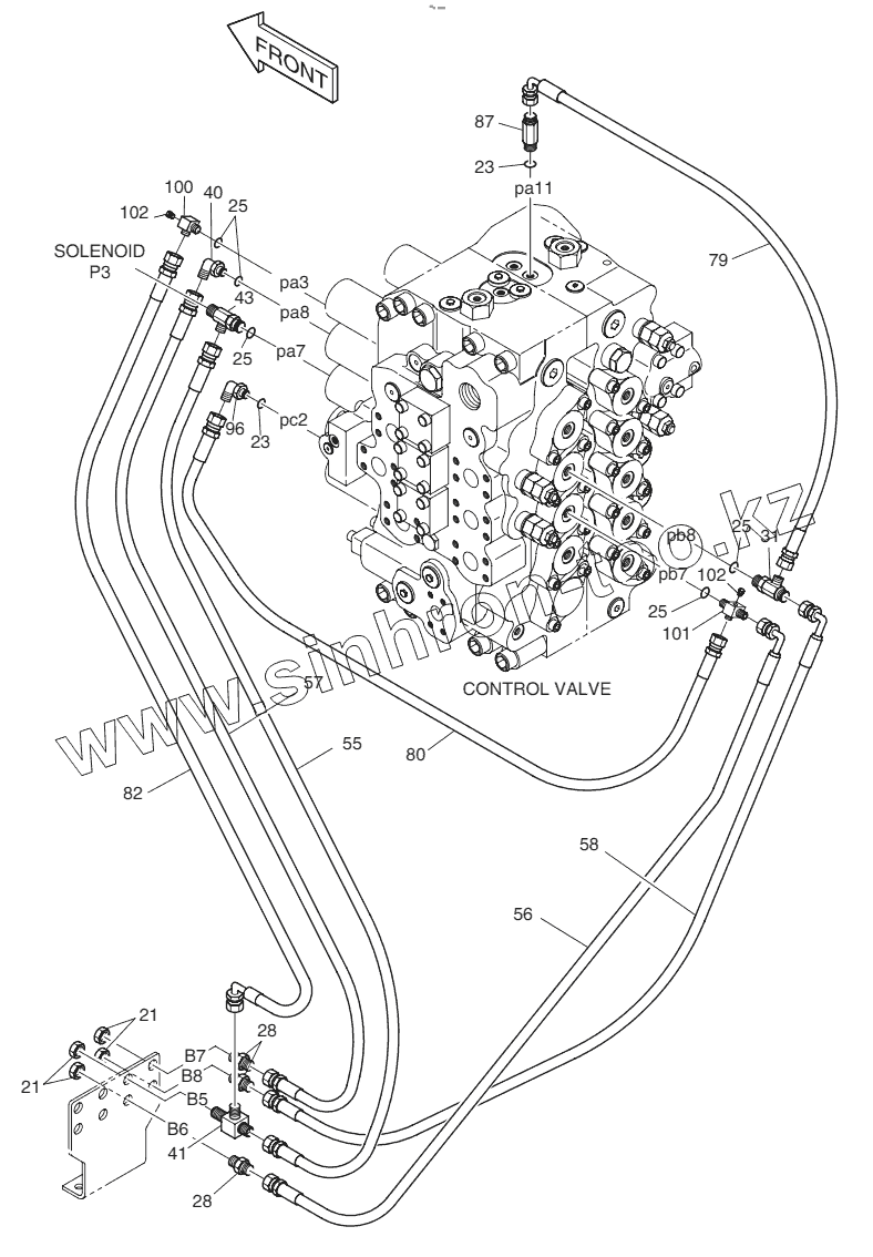 Каталог запасных частей к технике: Doosan S500LC-V. PILOT PIPING (5)