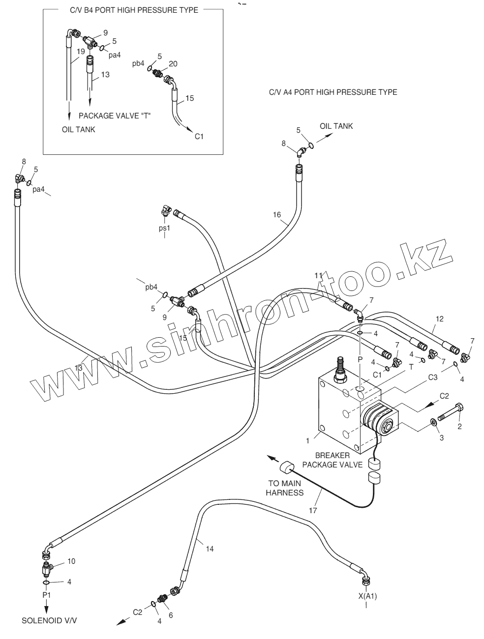 Каталог запасных частей к технике: Doosan S500LC-V. PILOT PIPING - BREAKER