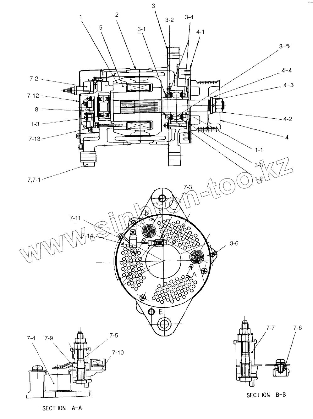 Каталог запасных частей к технике: Doosan SOLAR 130W-V(1). ALTERNATOR (947-]