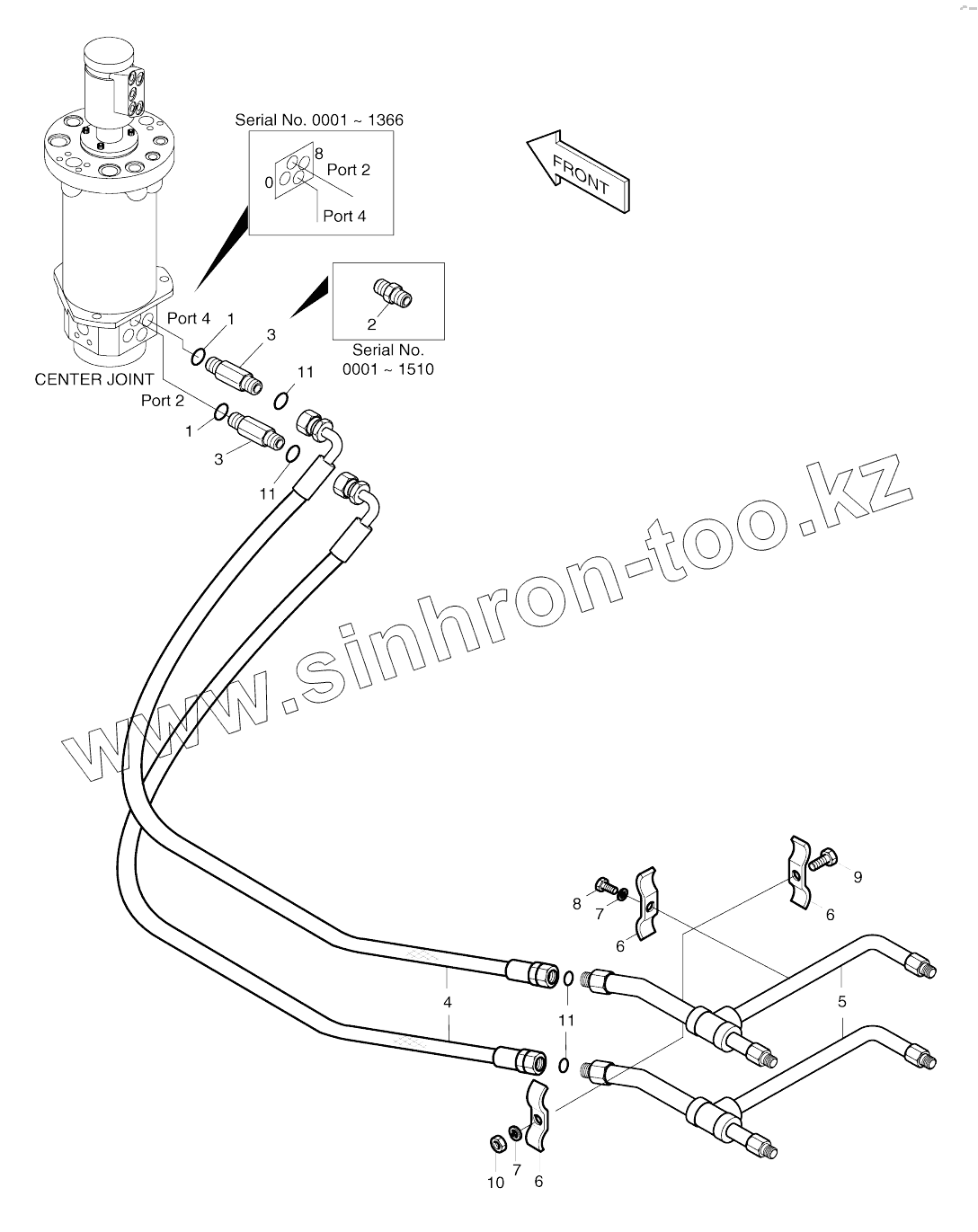 Каталог запасных частей к технике: Doosan SOLAR 130W-V(1). BRAKE PIPING (1)-FRONT