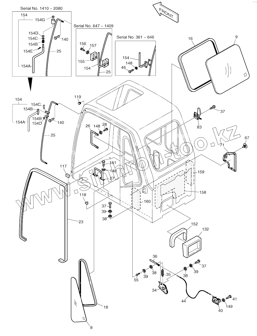 Каталог запасных частей к технике: Doosan SOLAR 130W-V(1). CABIN (2)