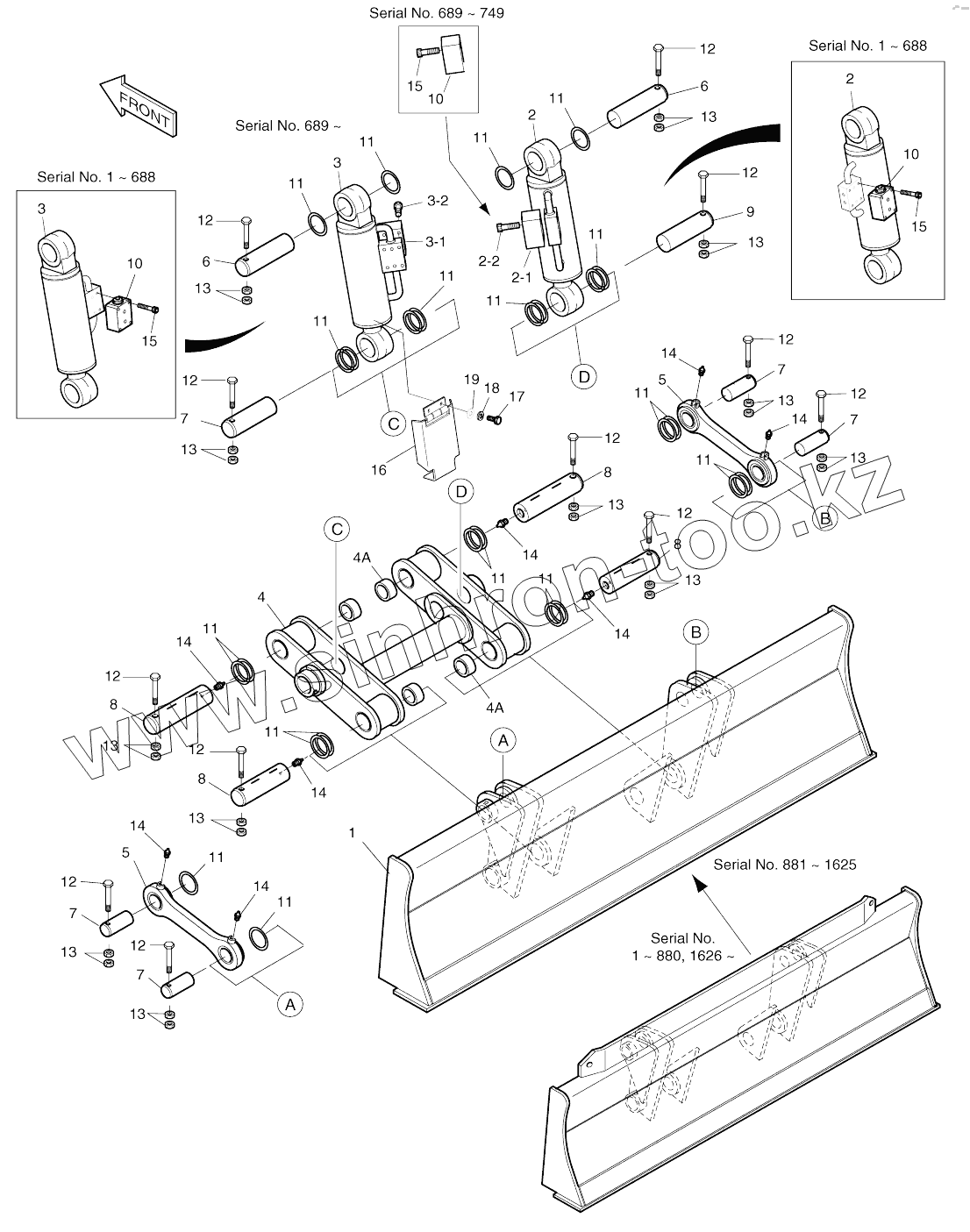 Каталог запасных частей к технике: Doosan SOLAR 130W-V(1). DOZER BLADE