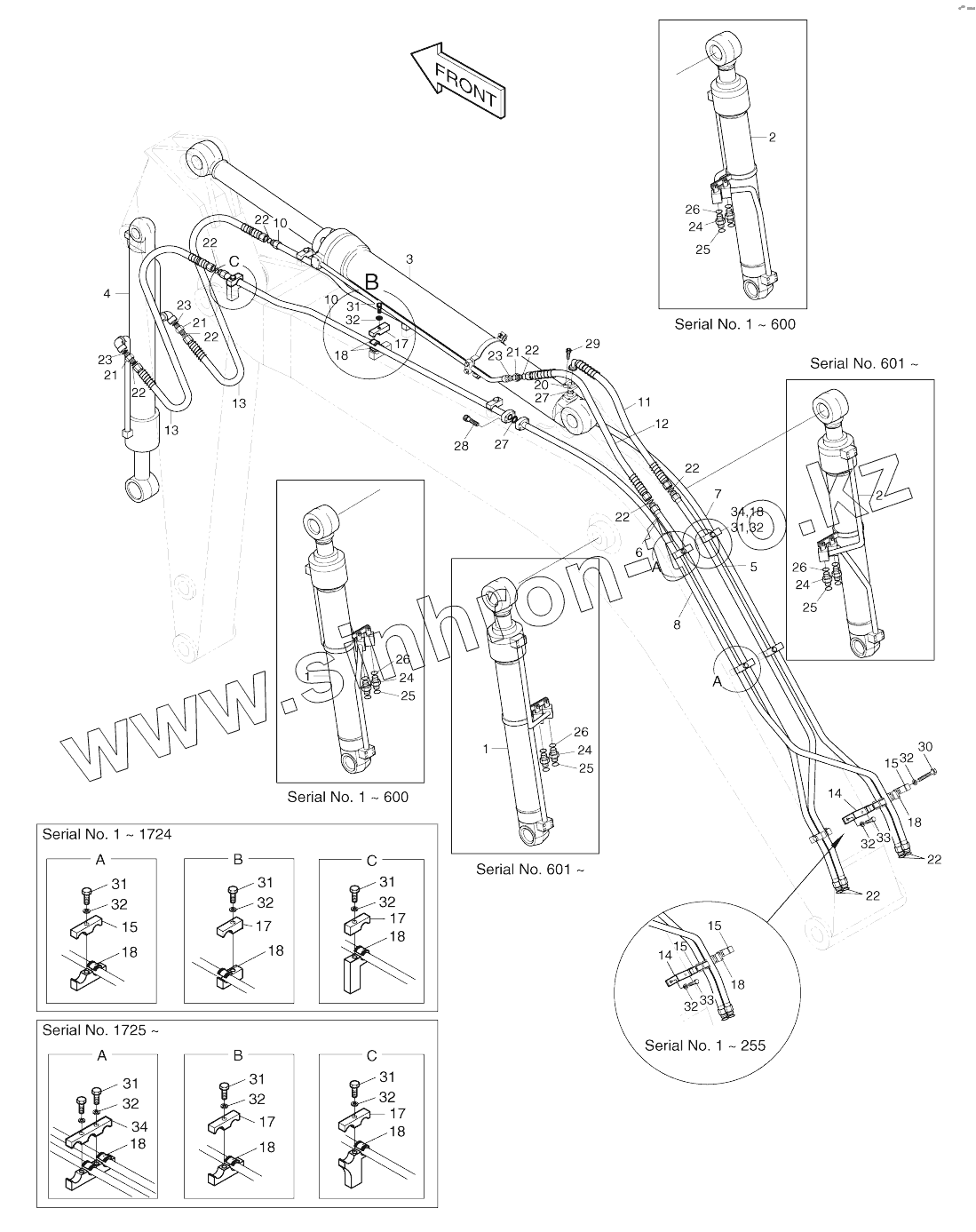 Каталог запасных частей к технике: Doosan SOLAR 130W-V(1). FRONT PIPING
