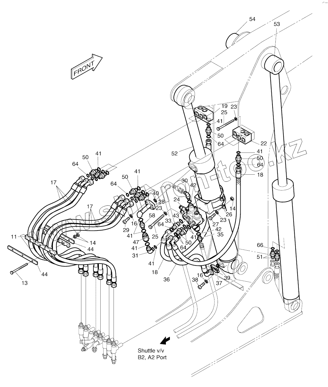 Каталог запасных частей к технике: Doosan SOLAR 130W-V(1). FRONT PIPING (1)-ARTI. BOOM