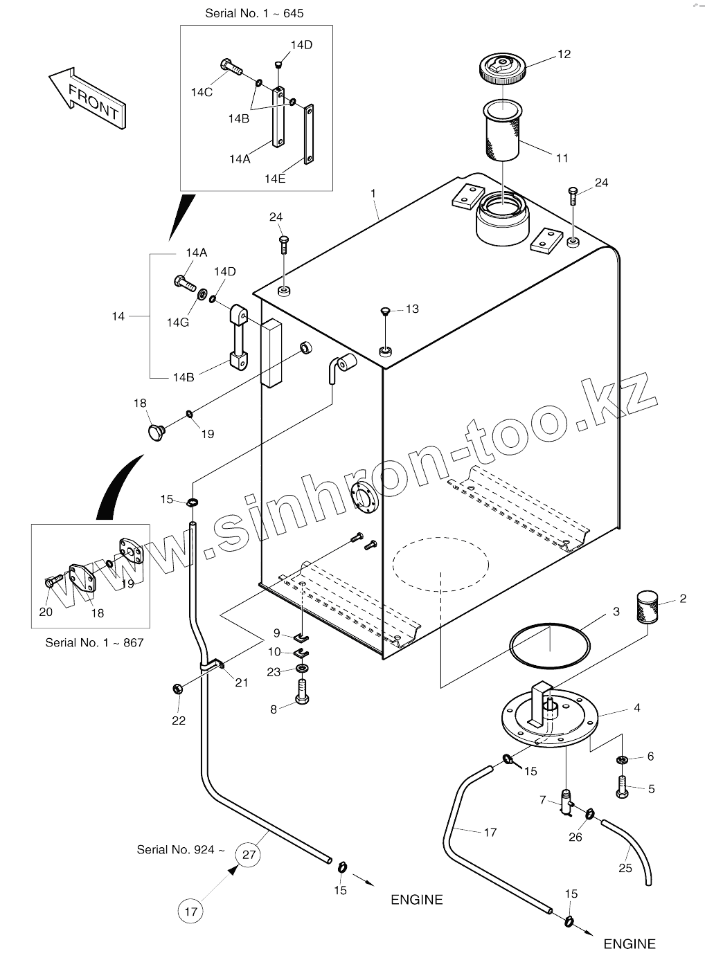 Каталог запасных частей к технике: Doosan SOLAR 130W-V(1). FUEL TANK